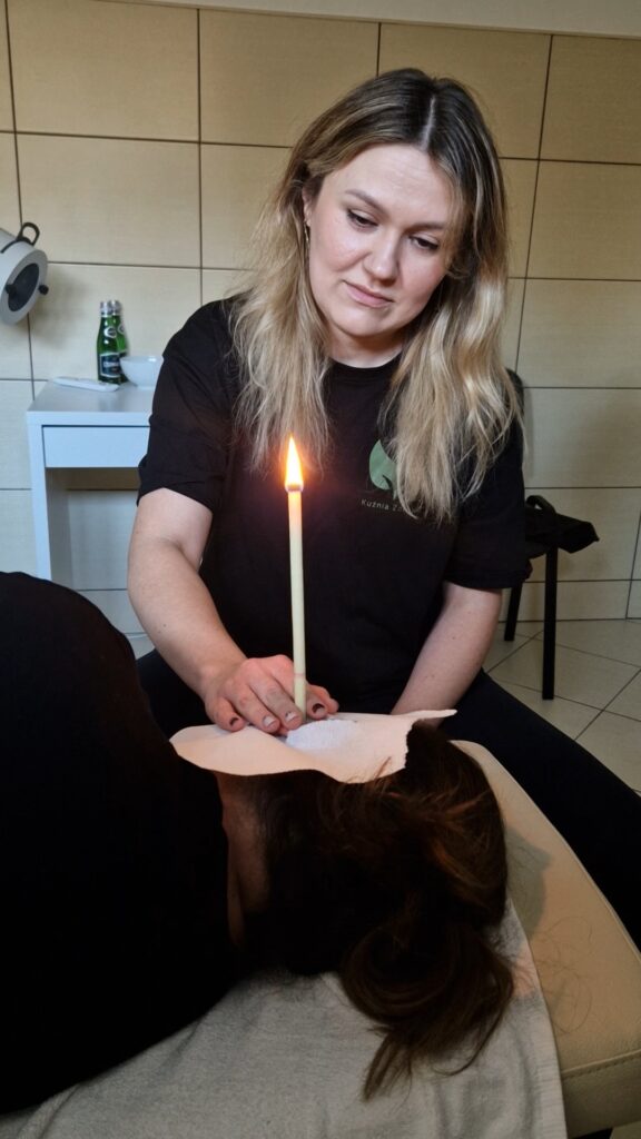 Podczas spalania się świecy wytwarza się podciśnienie w kanale usznym . Prowadzi ono do regulacji ciśnienia zatok i błony bębenkowej. Ciśnienie krążące dostarcza stężoną parę olejków, wzbogaconą ziołowymi substancjami do wnętrza ucha. Dodatkowo nagrzewająca się blaszka przenosi łagodny, uspokajający prąd ciepła. Cały proces jest niezwykle przyjemny.